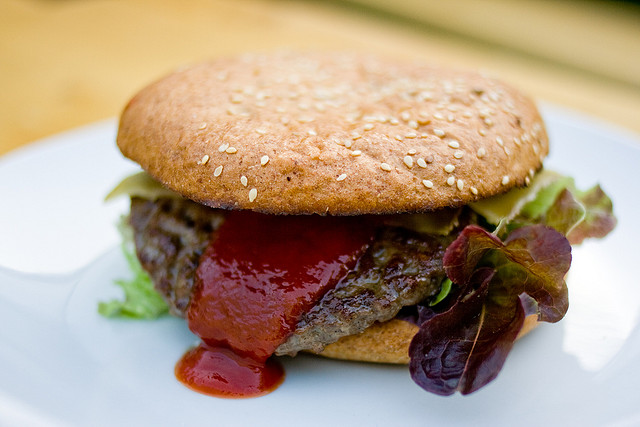 Sieht kaum anders aus als ein herkömmliches Produkt: ein Bio-Burger. Foto: kadluba / Flickr (CC BY-SA 2.0)