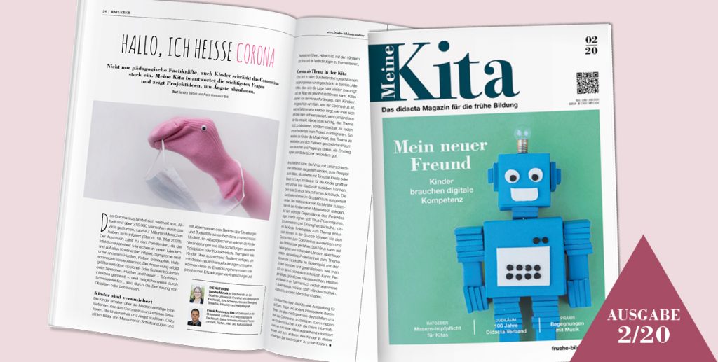 Außerdem zeigt das neue Magazin Projektideen, um Ängste rund um das Coronavirus bei Kindern abzubauen, beantwortet die wichtigsten Fragen zu diesem Thema und spricht mit dem Kinderlied-Komponisten Reinhard Horn darüber, warum er davon überzeugt ist, dass Kinderlieder ein wichtiger Seelenpoviant sind.