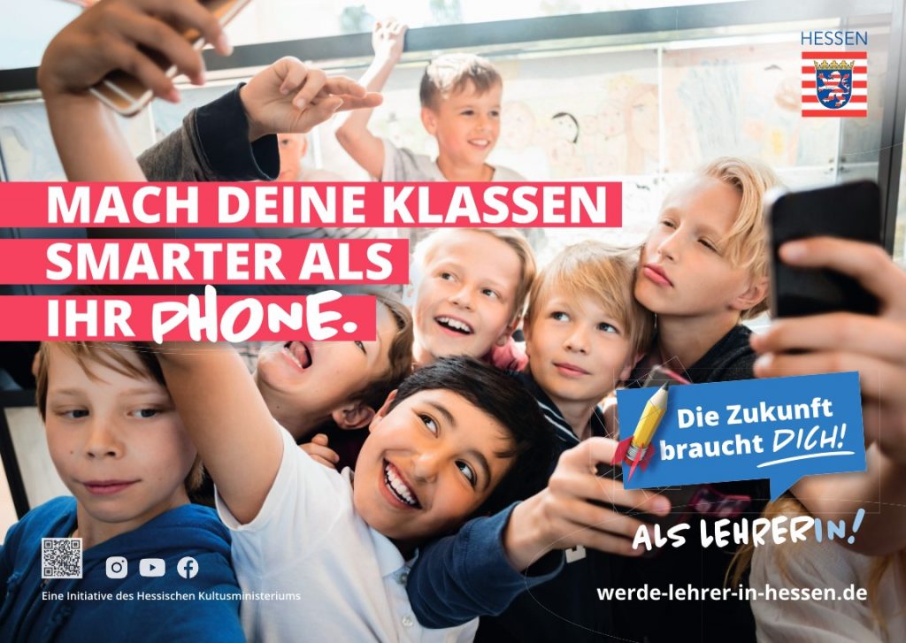 Die Werbemotive zeigten auf, so heißt es beim Ministerium, dass gesellschaftliche Zukunftsthemen wie Digitalisierung oder Klimawandel eng mit dem Thema Bildung verknüpft seien. Der Medienmix aus Social-Media-Aktivitäten, Digital- und Plakatkampagne verfolge mehrere Ziele: möglichst viele Schülerinnen und Schüler zu erreichen, die Zielgruppe emotional durch ein Zukunftsthema anzusprechen und sie auf das Herzstück der Kampagne, die neu konzipierte Homepage www.werde-lehrer-in-hessen.de hinzuleiten.