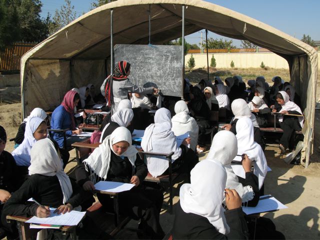 Und das macht sich auch im Unterricht bemerkbar. Mathestunde in der Kaloi-Ogeri-Schule am Stadtrand von Mazar-e Sharif: Der Unterricht unter freiem Himmel oder in provisorischen Zelten ist die Regel, gemauerte Gebäude hingegen die Ausnahme. Christiane Althoff sitzt zwischen 50 Schülerinnen, einer vergleichsweise kleinen Klasse, und macht sich Notizen. “Leider sieht der Unterricht in über 90 Prozent der Stunden so aus, dass der Lehrer etwas erklärt und den Schülern danach Fragen dazu stellt”, sagt sie. Gemeinsames Lesen? Fehlanzeige: Meist gibt es nur ein Buch und das nutzt der Lehrer. Tafelbilder? Die können nur diejenigen abschreiben, die Heft und Stift besitzen. Die wenigsten Schulen sind so gut ausgestattet wie diese. Althoff: “Wenn man in deutschen Kompetenzstufen denkt, ist der Unterricht zumeist rein reproduktiv, ohne jede Anwendung oder gar kritische Reflexion.”