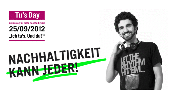 BERLIN. Mitmachen, vormachen, andere animieren, kreativ werden, ein Zeichen für mehr Nachhaltigkeit setzen – mit großen wie kleinen Aktionen: Das will der “Tu’s Day” der Vereinten Nationen. Kinder und Jugendliche aus ganz Deutschland sind dazu aufgerufen, Ideen in die Tat umzusetzen und zu zeigen: Nachhaltigkeit können wir auch! Mitmachen am 25. September 2012 können Schul-AG’s, einzelne Klassen, aber auch ganze Schulen und erstmals auch Kitas.
