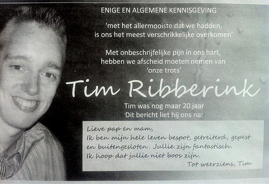 Tim studierte an der pädagogischen Hochschule Windesheim in Zwolle, er wollte Geschichtslehrer werden und bereitete sich auf ein Auslandspraktikum vor. Dem Direktor ist laut Bericht “nicht bekannt, dass er bei uns gemobbt wurde. Wir wissen aber auch nicht, ob das schon während der Schulzeit passiert ist. Und wir werden es vielleicht auch nie erfahren.” Gestern wurde Tim beerdigt.
