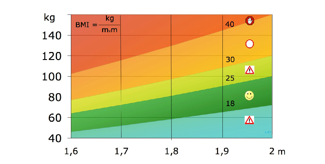 Beim BMI wird das Gewicht in Kilogramm durch die Körpergröße in Metern zum Quadrat geteilt. Heraus kommt eine Statistik, der zufolge 75 Prozent aller deutschen Männer und fast 60 Prozent der Frauen übergewichtig, mehr als 50 Prozent der Männer und 23 Prozent der Frauen gar fettleibig sind. Was diese Statistik nicht berücksichtigt: Bei sportlichen Menschen sind es oft Muskeln, die das Gewicht und damit den BMI nach oben treiben.