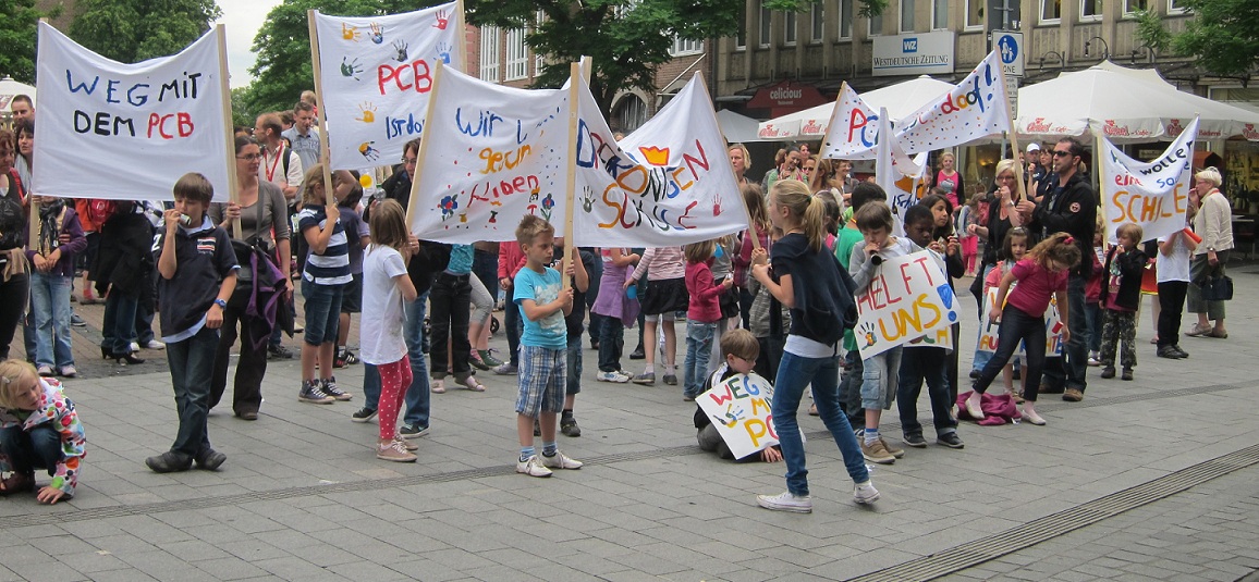 Immerhin, die Verwaltung ließ das Schulgebäude erneut auf Schadstoffe untersuchen. Ergebnis: Sanierung unnötig. Die gemessenen Werte seien tolerabel, so lange regelmäßig gelüftet werde. Nicht einmal die Tatsache, dass bei Lehrern der Schule erhöhte PCB-Werte im Blut gemessen wurden – bei einer Lehrerin sogar zwei Drittel der Belastung, die als akut kritisch angesehen wird – focht den dazu von der Stadt beauftragten Gutachter, Prof. Ulrich Ewers vom Hygiene-Institut des Ruhrgebietes, an. Es sei höchst unwahrscheinlich, dass die Gesundheitsprobleme der Betroffenen mit PCB zu tun hätten, meinte er. „Aus den Ergebnissen der Blutuntersuchungen lässt sich ableiten, dass die untersuchten Personen (…) keiner höheren Belastung und damit keinem höheren Erkrankungsrisiko ausgesetzt sind als die allgemeine Bevölkerung“, so heißt es in seinem Bericht.