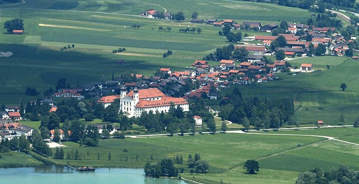 Blick auf Schlehdorf und das Kloster am Kochelsee. Foto: Oliver Spalt / Wikimedia Commons (cc-by-sa-2.5)