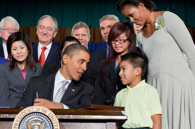Bilder mit Kindern sind ein beliebtes Wahlkampfmotiv bei Politikern (hier US-Präsident Barack Obama) . Foto: Leader Nancy Pelosi /flickr (CC BY 2.0)