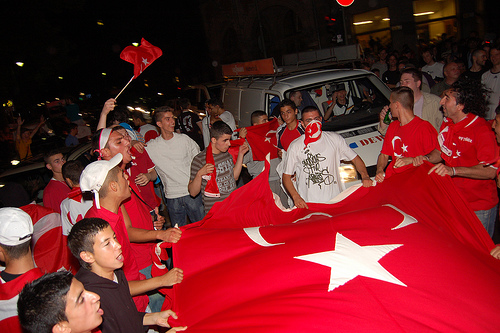 Integration: Türkische und deutsche Jugendliche feiern gemeinsam nach einem Spiel Türkei gegen Deutschland bei der Fußball-Europameisterschaft 2008. Foto: Fotos for social change / Jakob Huber / Flickr