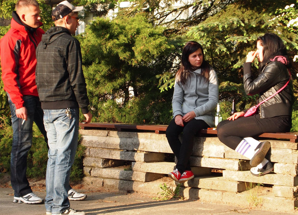 • Pascal: «Alter, lass mal noch schnell rauchen.» Mike: «Ich muss erst Späti Kippen holen.» Melanie: «Kommt jemand mit Klo?»