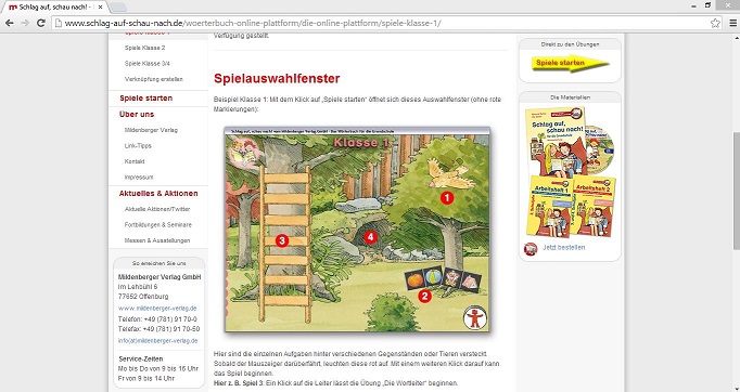 DÜSSELDORF. Neben Aufgaben zum Lesen- und Schreibenlernen gehören zum Deutschunterricht der Grundschule auch Übungen für einen sicheren Umgang mit dem Wörterbuch. Der Mildenberger Verlag, der das Grundschulwörterbuch „Schlag auf, schau nach“ herausgibt, bietet im Internet verschiedene Spiele, mit denen die Wörtersuche geübt sowie die Grammatik und die Rechtschreibung trainiert werden kann.