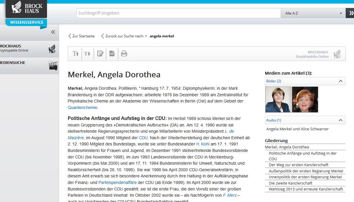 BERLIN. Vor 60 Jahren wurde die heutige Bundeskanzlerin Angela Dorothea Merkel am 17. Juli 1954 in Hamburg geboren. Anlässlich ihres runden Geburtstages wollen wir ihren politischen Weg – von den Anfängen 1989 bis zu ihrer Wiederwahl zur Kanzlerin 2013 – mit einem Quiz nachzeichnen. Nutzbar ist es auch in der Druckversion (siehe unten) als spielerische Einheit im Politik- oder Geschichtsunterricht. Die notwendigen Informationen bekommen Mitspieler aus dem unten angefügten Text aus dem Brockhaus-Wissensservice. Zu den Lösungen kommen Sie hier. Hier gibt es weitere Informationen zum Brockhaus Wissensservice. Schulen können dort einen Gratis-Probezugang erhalten.