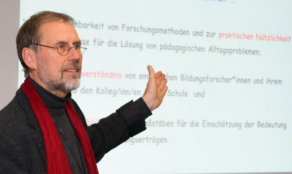 „Menschen lassen sich nicht vermessen“. Prof. Dr. Hans Brügelmann rät zum Erfahrungsaustausch zwischen Lehrern statt Handlungen nach Statistiken. Foto: Universität Siegen