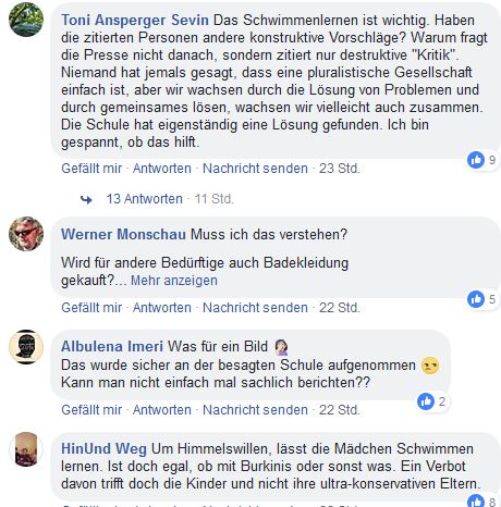 Wie wäre es denn mal mit einer repräsentativen Umfrage unter den Mädchen, was die selber wollen? Ob sie freiwillig oder nur gezwungenermaßen diese Burkinis anlegen?