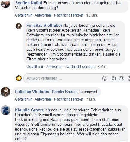 Integration wird nun mal behindert, wenn “Menschen zu Kuscheltieren gemacht werden, die anscheinend besonders beschützenswert sind und denen es abgesprochen wird, Kritik auszuhalten, ihr Handeln und sich selbst zu hinterfragen und möglicherweise auch zu ändern.”