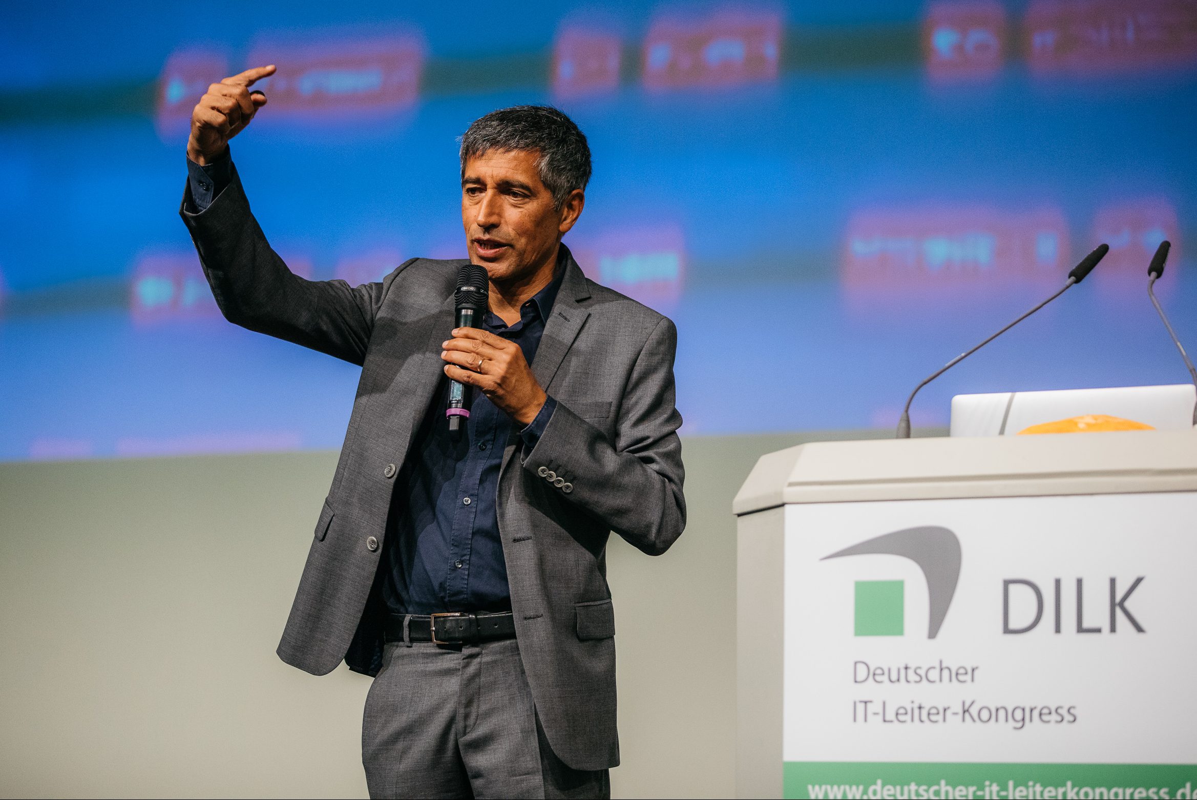 Wie sich Menschen mitnehmen lassen, machen – bei aller berechtigten Kritik an den Auswüchsen – die IT-Giganten vor, wie der amerikanisch-deutsche Unternehmensberater Tom Oliver auf dem DILK anschaulich machte. Der Wirtschaftswissenschaftler, der Muschelkette und goldene Turnschuhe zum Anzug kombiniert, hat nach eigenen Angaben bereits Konzerne wie Google und SAP sowie Institutionen wie die Weltbank, das EU-Parlament und die Vereinten Nationen beraten. Was ihm im Silicon Valley aufgefallen ist, verriet er den versammelten IT-Experten auf dem DILK: Flache Hierarchien – jeder Chef sei von jedem Mitarbeiter ansprechbar. Teamwork rund um die Uhr – niemand sei als Einzelkämpfer unterwegs. Eine ausgeprägte Fehlertoleranz – Scheitern werde als notwendiger Teil letztlich erfolgreicher Prozesse angesehen. Und: Kreativität als Erfolgsmotor – für spielerische Herangehensweisen würden Freiräume geschaffen.