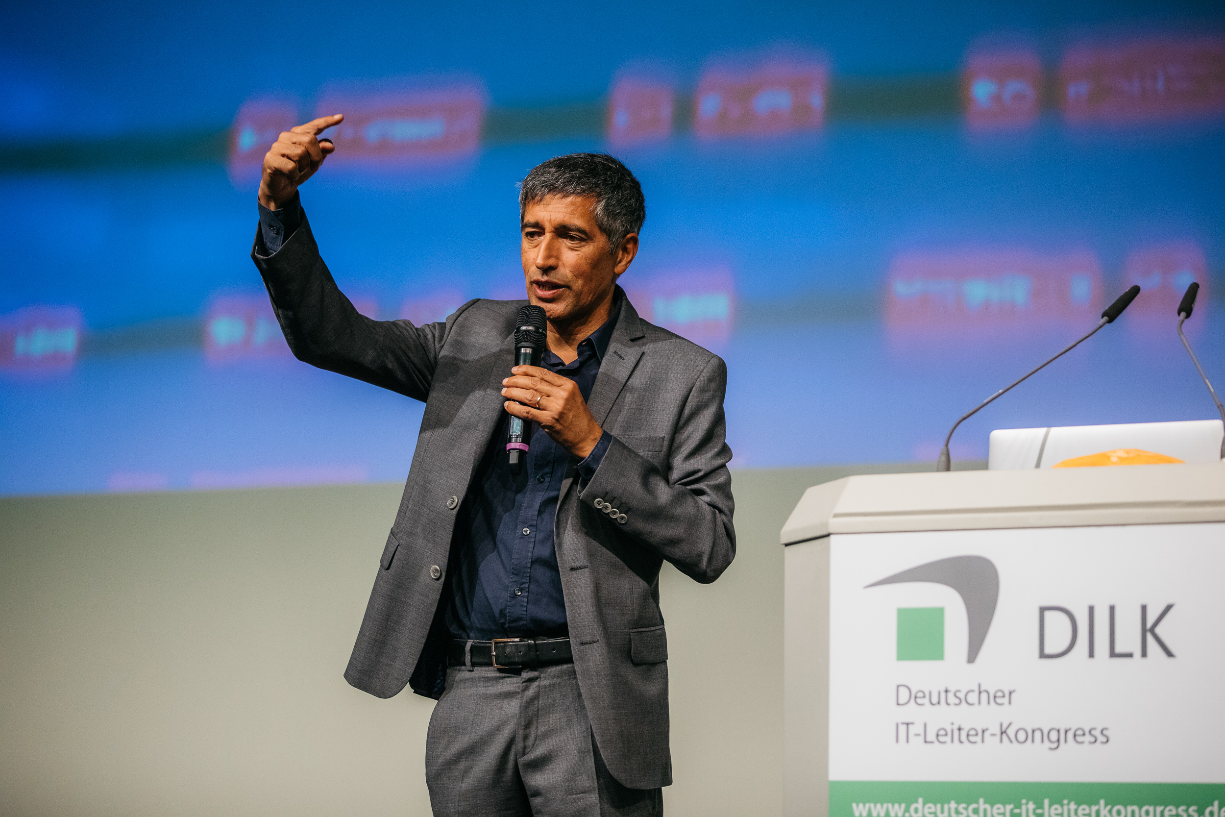 Wie sich Menschen mitnehmen lassen, machen – bei aller berechtigten Kritik an den Auswüchsen – die IT-Giganten vor, wie der amerikanisch-deutsche Unternehmensberater Tom Oliver auf dem DILK anschaulich machte. Der Wirtschaftswissenschaftler, der Muschelkette und goldene Turnschuhe zum Anzug kombiniert, hat nach eigenen Angaben bereits Konzerne wie Google und SAP sowie Institutionen wie die Weltbank, das EU-Parlament und die Vereinten Nationen beraten. Was ihm im Silicon Valley aufgefallen ist, verriet er den versammelten IT-Experten auf dem DILK: Flache Hierarchien – jeder Chef sei von jedem Mitarbeiter ansprechbar. Teamwork rund um die Uhr – niemand sei als Einzelkämpfer unterwegs. Eine ausgeprägte Fehlertoleranz – Scheitern werde als notwendiger Teil letztlich erfolgreicher Prozesse angesehen. Und: Kreativität als Erfolgsmotor – für spielerische Herangehensweisen würden Freiräume geschaffen.