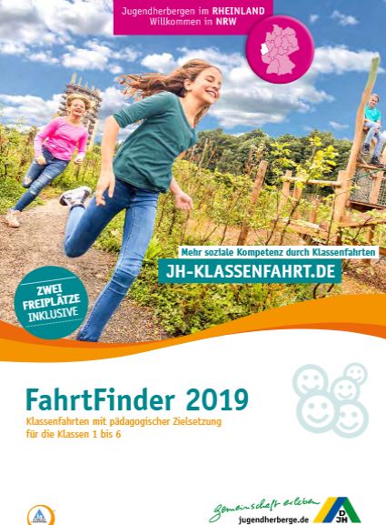 Das hier genannte Programm und viele mehr gehören zum Katalog „FahrtFinder“ des gemeinnützigen Deutschen Jugendherbergswerk (DJH) Rheinland, das sich mit seinen Klassenfahrten an Schüler von der 1. bis zur 6. Klasse richtet. Der aktuelle Katalog 2019 ist jetzt erschienen. Ein umfassender Service reicht von zwei Freiplätzen pro Fahrt über Zusatzangebote wie Getränke-Pauschalen, Grillen oder Outdoor-Abende.