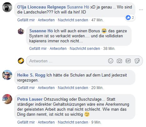 Was für den einen die Zusage zur Festeinstellung ist, ist für andere die “Buschzulage” oder der Versuch durch Dauervertretungen angehäufte Mehrarbeitsstunden abzukaufen. Die Länder suchen halt händeringend nach Möglichkeiten, die Mangelverwaltung zu organisieren. Mit dem Versuch das deputat für lehrkräfte der SII an niedersächsischen Gymnasien einseitig zu erhöhen, ist das Land ja kläglich gescheitert. Aufgrund des bestehenden lehrkräftemangels ist ein “Arbeitnehmermarkt” entstanden; Referendare können Stellen an Orten am AdW locker ablehnen, um Dienstorte ihrer Wahl zu favorisieren. Insofern bleibt nur die “Buschzulage” als finanzieller Anreiz, um Leute in die “Pampa” zu locken.