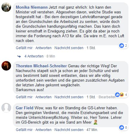 Man sollte die Arbeitszeiterhebung mal bei allen Schulformen um die Schulleitung bzw. die erweiterte Schulleitung bereinigen. Jedenfalls jammern die Grundschullehrer gemäß der Statistik auf hohem Niveau. Sie sollen froh sein, dass Tonne die Unterrichtsverpflichtung aufgrund des Lehrermangels und der Unterschreitung der mittleren Arbeitszeit nicht sogar um eine Wochenstunde erhöht.