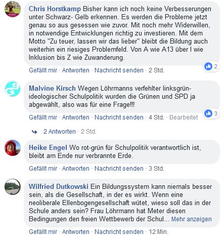 Dazu, so Banaszak, zähle eine falsche Positionierung zum Turbo-Abitur nach acht Jahren Gymnasium (G8). Löhrmann hatte, gegen den Willen der meisten Eltern, lange an G8 festgehalten. Weitere Fehler seien die unzureichende Ausgestaltung der Inklusion und die Überforderung der Schulen mit ständig neuen Anforderungen gewesen. Politische Antworten hätten ebenso gefehlt wie Anerkennung der Leistungen – auch in der Lehrerbesoldung.