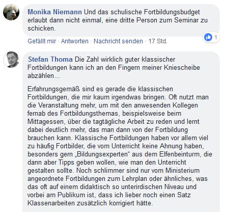 Komischerweise hielten die Professoren von Unis die Vorträge auf den Fortbildungen, die meinem Unterricht am wenigsten genutzt haben. Vor allem die Didaktik-Profs.