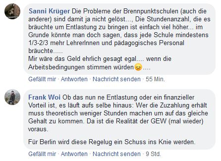 ZITAT: “Die GEW stößt sich etwa an den Kriterien: Als Brennpunktschule gilt, wenn mindestens 80 Prozent der Schüler von der Zuzahlung zu Lernmitteln befreit sind. Die Gewerkschaft spricht von einem «unpräzisen Faktor» und hält es für besser, weitere Indikatoren wie den Anteil an Quereinsteigern unter den Lehrern einzubeziehen. Sie findet es Erdmann zufolge auch zielführender, Lehrer von Unterrichtsstunden zu entlasten, damit sie mehr Zeit für die mittelbare pädagogische Arbeit abseits des Klassenraums haben.”