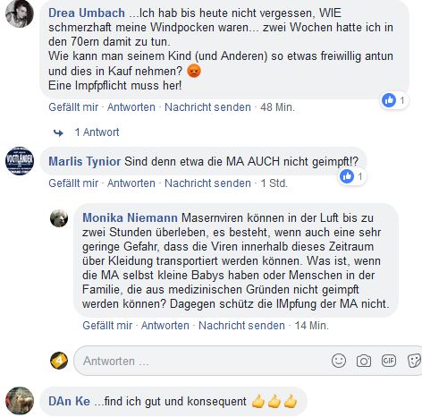 Dass es überhaupt soweit kommt, da sollte sich die Politik fragen, an welcher Stelle die Gesundheitsaufklärung von Erwachsenen versagt hat, und wo sie Fehler gemacht haben. Bei Kindern wird sofort immer geschrien, dass die Lehrer und das Schulsystem alles falsch macht, in diesem Fall hat die Gesundheitsaufklärung von Erwachsenen kläglich versagt. Viele Krankheiten könnten lange ausgerottet sein, wenn die Impfrate hoch genug wäre.