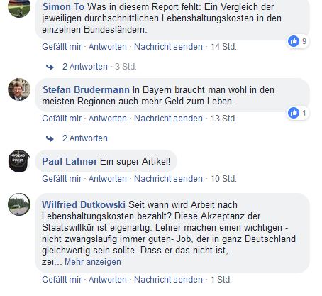 Folglich führen die jährlichen relativen Erhöhungen eher zu einer Ausweitung der Unterschiede zwischen den Bundesländern, während gleichzeitig die Beschwerden kommen, dass es keine geeigneten Bewerber mehr gibt. Das muss eine Verschwörung sein, den der öffentliche Dienst ist ja attraktiv wie niemals zuvor.