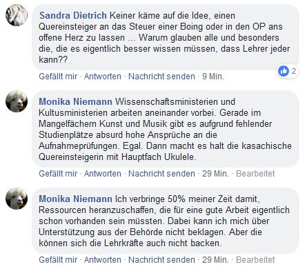 PS: Was Sie über Seiteneinsteiger sagen, die einen “schlechten Job” machen, stimmt und stimmt auch nicht. Es gibt immer solche und solche. Unter den ausgebildeten Lehrern auch! Wir haben pi mal Daumen 5 Seiteneinsteiger an unserer Schule, auf einen trifft zu, was Sie als schlechte Erfahrung schildern, auf die anderen 4 nicht!