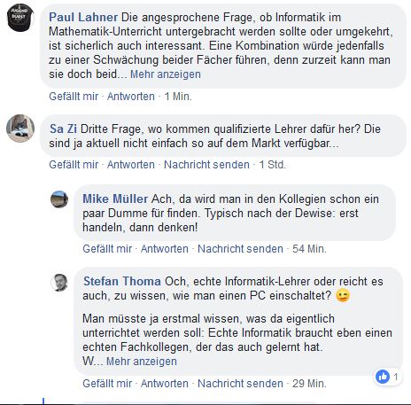 Da kann man dann auch ein Fach namens “Medienbildung” als Pflicht vorschlagen. Dazu bräuchte man allerdings keine Informatiklehrkräfte.