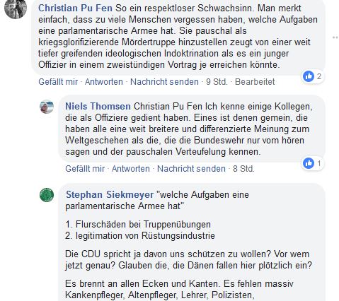 Es gehört zur Politischen Bildung auch über die Bundeswehr zu informieren, ich würde nur in die letzten beiden Klassen gehen, und auch eine Diskussion über Töten und warum Deutschland Soldaten hat und entsendet, in den Folgestunden des Besuchs stattfinden lassen. Aber nicht nur Bundeswehr, es sollten aber ebenso einmal andere Gegenkräfte/ Interessensgruppen eingeladen werden und ebenso viel über unser Strafrecht, was man eben auch sls Jugendlicher alles nicht tun darf etc und über Drogen und vieles mehr Unterrichtsstunden gehalten werden. Viel näher muss uns aber unsere Umgebung stehen; Umweltschutz fängt mit Sauberkeit im Schulhof an.
