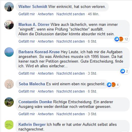 Der Einschätzung schloss sich auch der Bayerische Philologenverband (BPV) an. «Rein mathematisch scheinen die Aufgaben lehrplankonform und angemessen gewesen zu sein» – und die Aufgaben auch nicht textlastiger als beim Abi 2018, sagte der Vorsitzende Michael Schwägerl.