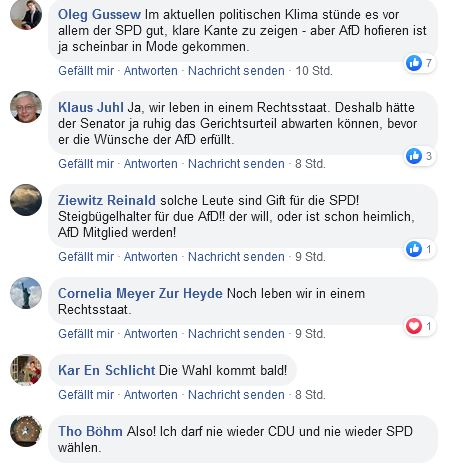Wenn die Linke die Absetzung des Schulsenators fordert, sollte sie daran denken, dass sie sich bis vor kurzem noch selbst im Hinblick auf Beobachtungen durch den Verfassungsschutz usw. heftig dagegen gewehrt hat, als in den Parlamenten vertretene Partei diskriminiert zu werden. Meiner Meinung nach zu Recht. Wollen wir tatsächlich die fragwürdige Praxis von Berufsverboten wieder zurück haben in Deutschland?