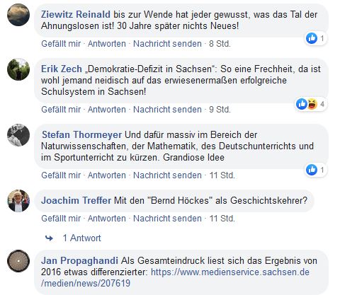 Der Sachsenmonitor gibt viele Antworten auf die Fragen und Probleme von Dresden/Pegida, Chemnitz und in der dortigen Provinz. Die Plakatwälder der NPD und des rechten Flügels der AfD in diesen Landesteilen sind symptomatisch und gleichzeitig erschreckend anzusehen.