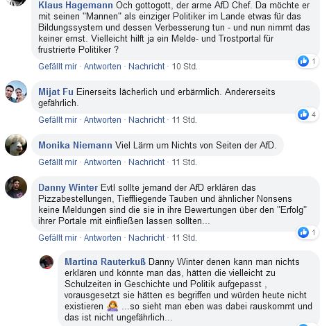 Dem Hamburger Beispiel folgten ähnliche Portale der AfD in Berlin, Brandenburg, Niedersachsen, Sachsen, Sachsen-Anhalt und zuletzt Anfang des Monats in Mecklenburg-Vorpommern – wo es aber nach wenigen Tagen vom Landesdatenschutzbeauftragten mit Hinweis auf die Datenschutzgrundverordnung verboten wurde. Sie untersagt die Verarbeitung von Daten, aus denen politische Meinungen hervorgehen. Der AfD-Landesverband will dagegen Widerspruch einlegen. Auch in Hamburg prüfte der Datenschutzbeauftragte schon im vergangenen Herbst die Zulässigkeit des Portals, sah für sich aber keine Handhabe.