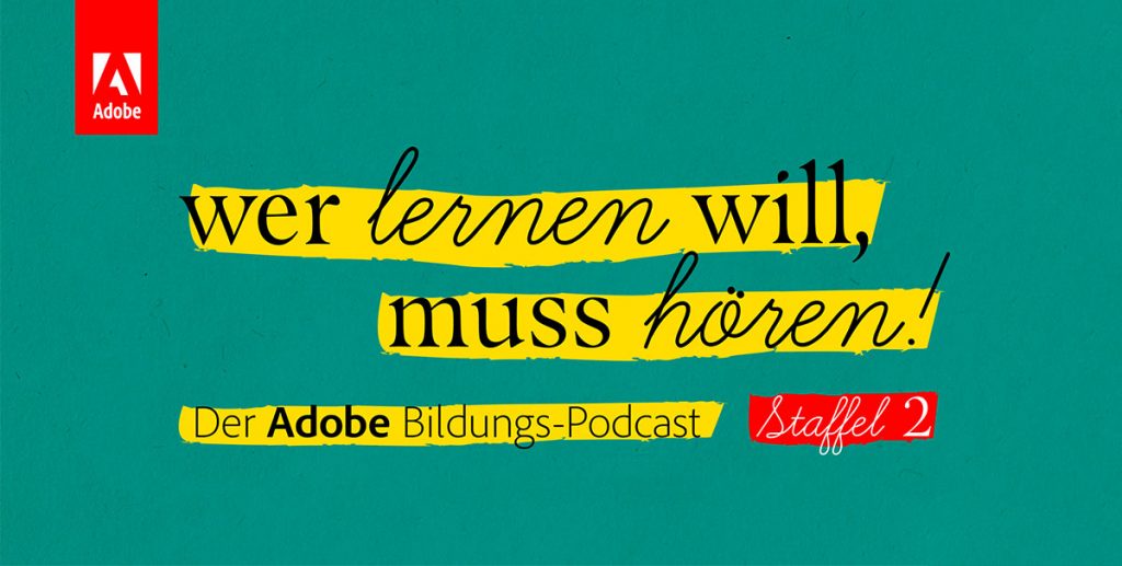 Die zweite Staffel des Adobe Bildungs-Podcasts stößt eine vielseitige Diskussion zum Status Quo der digitalen Bildung in Deutschland an. Werdet auch ihr Teil der Unterhaltung! Bei Spotify, Deezer und iTunes findet ihr alle Folgen; auf Adobes Social Media-Kanälen Instagram, Facebook und Twitter könnt ihr mitdiskutieren! Also: Wer lernen will, sollte (rein-)hören!