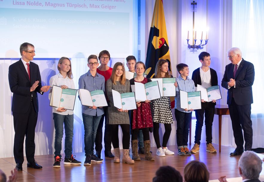 Fluchterfahrungen von Hugenotten und Waldensern im 17. Jahrhundert, Schülerproteste in der DDR oder die Integration vietnamesischer ›Boatpeople‹ in Deutschland: Zu Themen wie diesen haben Schülerinnen und Schüler aus Berlin, Brandenburg, Nordrhein-Westfalen, Sachsen und Sachsen-Anhalt geforscht, die sich im Rahmen des Geschichtswettbewerbs des Bundespräsidenten für die ersten Preise qualifiziert haben. Die fünf mit je 2.000 Euro dotierten ersten Preise überreichte Bundespräsident Frank-Walter Steinmeier in Schloss Bellevue.
