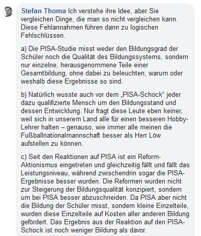 Eine überfällige Replik auf die feuilletonistischen Plaudereien von Prof Dollase zur Überflüssigkeit von PISA. Herzlichen Dank dafür, Herr Priboschek. Stimme Ihnen voll zu.