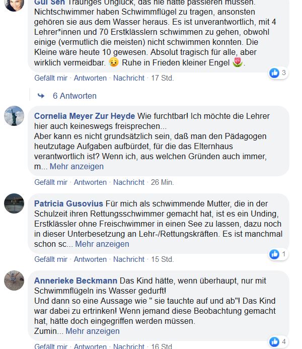 “Dieser Fall bestätigt meine persönliche Ansicht. Kinder, die nicht schwimmen können, was für sich betrachtet schon ein Unding ist, dürfen bei Klassenfahrten nicht ins Wasser!”