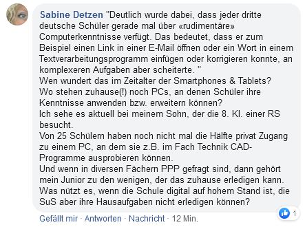 Eine Leserin kommentiert auf der Facebook-Seite von News4teachers:
