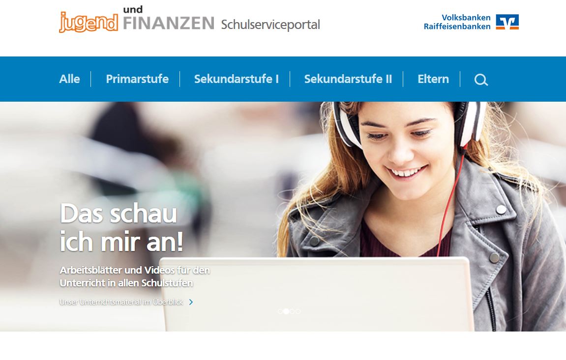 Das Schulserviceportal Jugend und Finanzen ist die Plattform für finanzielle Bildung der Volksbanken und Raiffeisenbanken. Mit ihrer starken Verankerung vor Ort engagieren sich viele Genossenschaftsbanken oft in jahrelangen Kooperationen mit den Schulen ihres Geschäftsgebietes für die Erweiterung des Finanzwissens insbesondere von Kindern und Jugendlichen. Diese Vielfalt macht das Schulserviceportal sichtbar, indem eine Übersicht geboten wird, welche Bank sich mit welchem Finanzbildungsprojekt engagiert. Auch werden regelmäßig aktuelle Meldungen über örtliche Projekte, interessante Studien sowie Veranstaltungen im Bereich der Finanzbildung veröffentlicht.