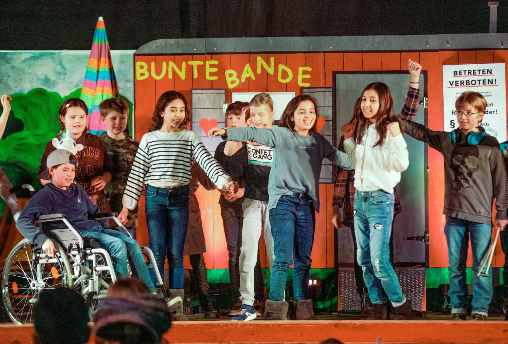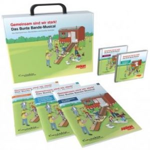 Musik ist ein wichtiges Instrument für die Entwicklung der eigenen Persönlichkeit und so hat die Aktion Mensch mit ihrem „Bunte Bande-Musical-Koffer“ eine Möglichkeit geschaffen, das Thema Inklusion auch auf die Bühne zu bringen. In Zusammenarbeit mit dem Kinderliedermacher Reinhard Horn, wurde ein Material-Paket entwickelt, das alles beinhaltet, was eine Schulklasse zum Einstudieren und Vorführen eines Bühnenstückes braucht. Vier verschiedene Drehbuchfassungen, mit verschiedenen Längen und Sprachniveaus, ermöglichen es Kindern mit und ohne besondere Bedürfnisse, aktiv mitzuwirken und hilfreiche Unterlagen für Pädagoginnen und Pädagogen schaffen gute Voraussetzungen für eine erfolgreiche Umsetzung.