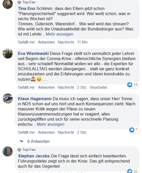 “Wie viel Kompetenz hast du der Bildungsministerin oder deinem Bildungsminister vor, während und jetzt zugetraut?” Ehrliche Antwort: Immernoch mehr als jetzt. Jetzt habe ich das Gefühl, dass keiner irgendeinen Plan hat und man sich populistisch davon leiten lässt, was der besonders lautstarke Teil der Bevölkerung will. Außerdem werden wissenschaftliche Ergebnisse nach Gutsherrenart verwendet.