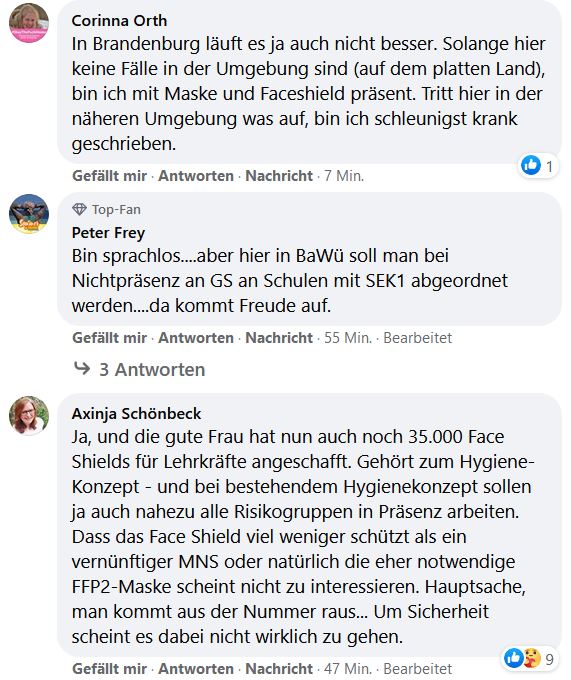 Ich habe gesehen, mit welchen ekelhaften Methoden die Schulleitungen in Berlin die vorerkrankten Lehrer zurück in den Präsenzunterricht gedrückt haben. Sie wurden öffentlich benannt und beschämt und sind reihenweise eingeknickt.