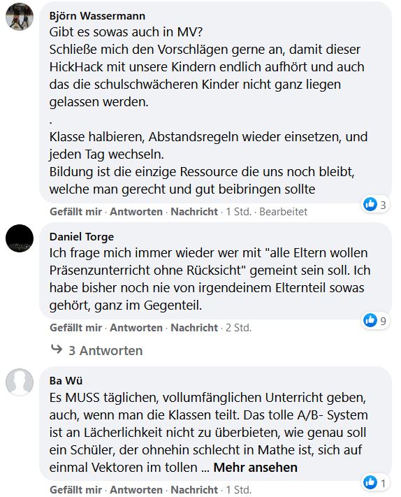 Interessant, da würde ich jetzt gerne die Listen sehen wie viele Eltern da unterschrieben haben. Ganz interessant wird es aber, wenn man den Eltern dann tatsächlich ein Angebot macht, dass aber beispielsweise reduzierter Präsenzunterricht beinhaltet. Jeder Elternvertreter kann ein Lied davon singen, wie man für eine Mehrheit der Eltern, versucht bessere Möglichkeiten zu erwirken, hier kleinere Gruppen, bessere Ausstattung etc…. wenn beispielsweise die Eltern nachher feststellen, dass ihre Kinder nur jeden 2. Tag beschult werden, in der Notbetreuung sehr selektiert wird…..ob dann nicht der Großteil der Eltern nicht wieder den täglichen Präsenzunterricht befürwortet?