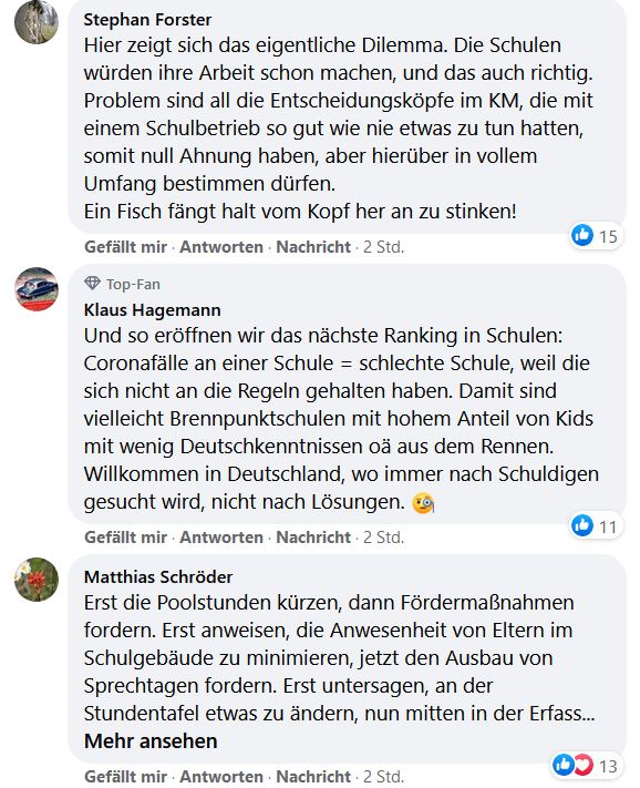 Wo sind denn die Kultusminister, die sich doch mal schützend vor ihre Lehrer stellen? Ich erwarte keinen Applaus wie beim Pflegepersonal, aber als Anfang wäre mal ganz schön, die Kultusminister würden uns Lehrer nicht wieder und wieder als Vollpfosten hinstellen. Wie sagte der Hase zum Igel? “Ich bin schon da!” Wo du gerade bist, bin ich schon längst! Richtig, wir sind keine blutigen Anfänger!!!!!!!!!!!!!!