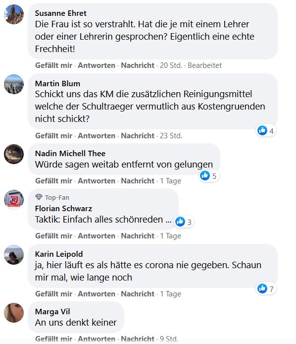 eine einzige Gängelei. Z. B. Gerätedesinfektion nach dem Sportunterricht. Es fehlt an Zeit und bitte stellt dafür dann auch Personal ein.
