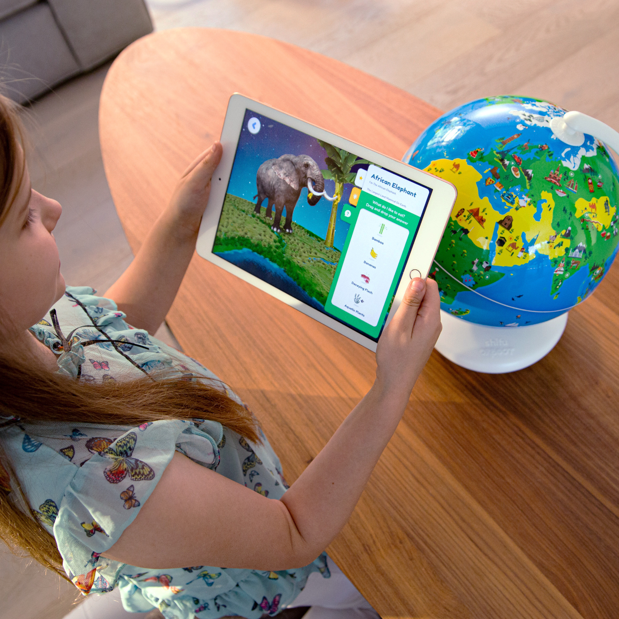 Mit Orboot entdecken Kinder ab vier Jahren die ganze Welt von Zuhause aus. In der Orboot-App wird der Globus mithilfe von erweiterter Realität auf dem Bildschirm zum Leben erweckt und damit fremde Kulturen greifbar gemacht. Wird die Smartphone- oder Tablet-Kamera auf den interaktiven Globus gerichtet, erscheinen in der App Figuren auf dem Globus, mit denen die Kinder interagieren können. Das Lernspielzeug vermittelt Wissen aus verschiedenen Kategorien, wie Kulturen, Landesküchen, Tiere und Sehenswürdigkeiten. Kinder lernen zum Beispiel, wo die Insel Vanuatu liegt, was eine Rafflesia ist oder welche Währung in Peru verwendet wird. Im Quiz-Wiz-Modus beantworten die Kinder Fragen mit ihrem neu erlernten Wissen. So werden die Lerninhalte vertieft und gefestigt. Außerdem können Kinder auf spannende Schatzsuchen um die ganze Welt gehen und einen eigenen Nationalpark aufbauen. Inbegriffen ist ein Reisepass, in dem Kinder die Flaggen der Länder, die sie bereits mit Orboot entdeckt haben, einkleben und ihre liebste Erinnerung eintragen können. Mit mehr als 1000 spannenden Informationen gibt es mit dem interaktiven Globus zahlreiche Fakten zu entdecken und viele Stunden voller Lern- und Spielspaß.