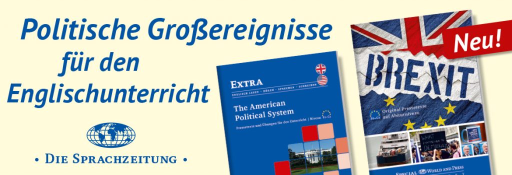 Die Sprachzeitung bietet mit seinen Themenheften Special World and Press – Brexit und Extra – The American Political System Lehrerinnen und Lehrern die Möglichkeit, mit original Pressetexten und journalistischem Bildmaterial, Vokabelübersetzungen und informativen Grafiken das Weltgeschehen einzuordnen und zu vermitteln. Aktueller als jedes Schulbuch.