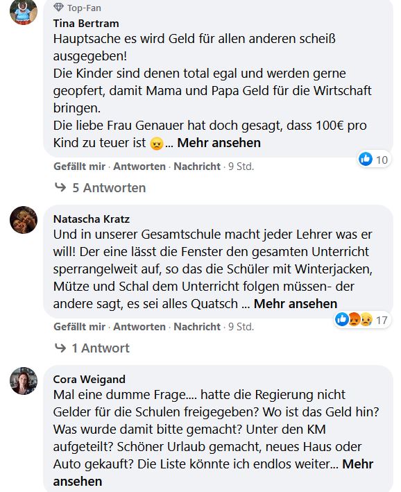 Weshalb ist für alles Mögliche Geld zur Unterstützung da, nur nicht für die Gesundheit der SchülerInnen und LehrerInnen?