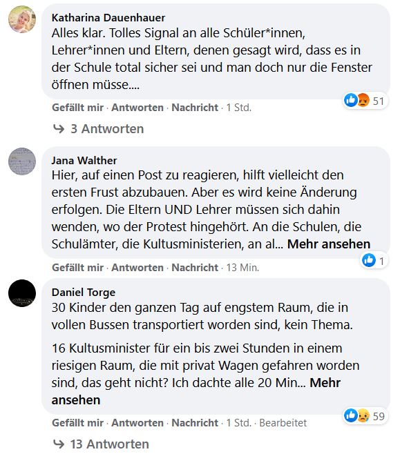 Meine Familie hat nach dieser Nachricht schallend gelacht. Sie stopfen Lehrer und Schüler täglich in eine Corona Party mit Minimalschutz Lüften und treffen sich selbst virtuell.